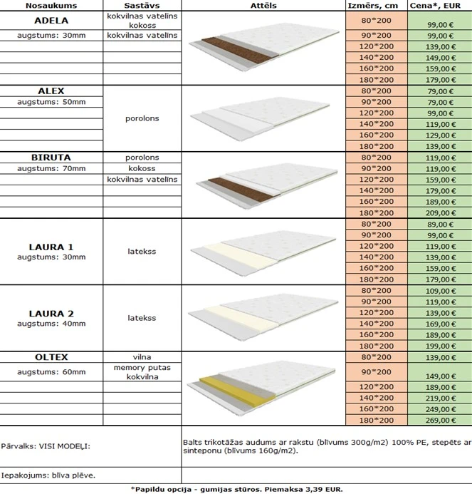 You just need to choose which filling you want the topper to have – coconut, latex, foam, memory foam! To make everything much clearer and so you can choose the right topper for yourself visit the store Kanclera NAMS Katoļu iela 7, Jelgava.