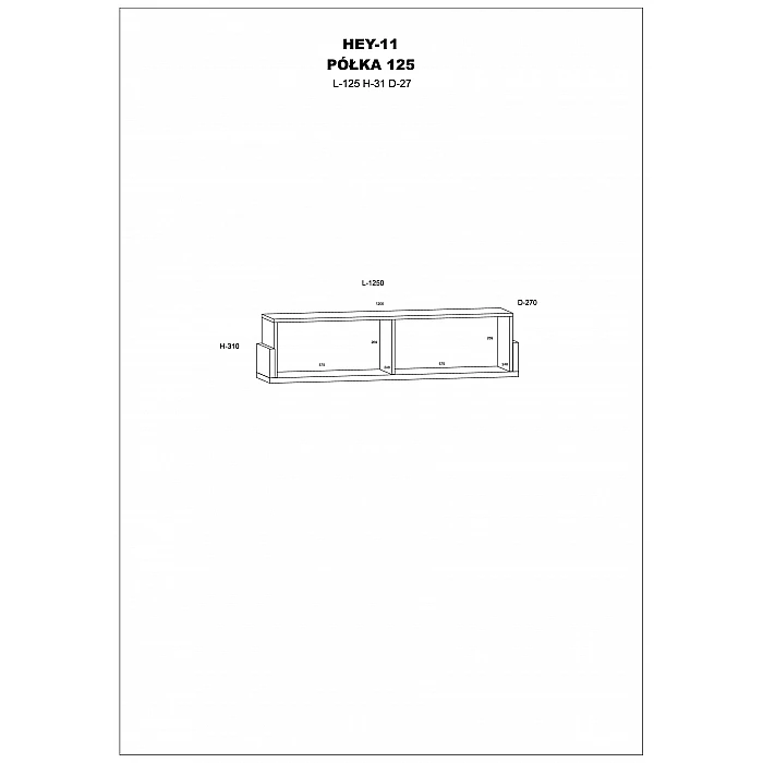 "Hanging Shelf 'HEY' 125x31x27"