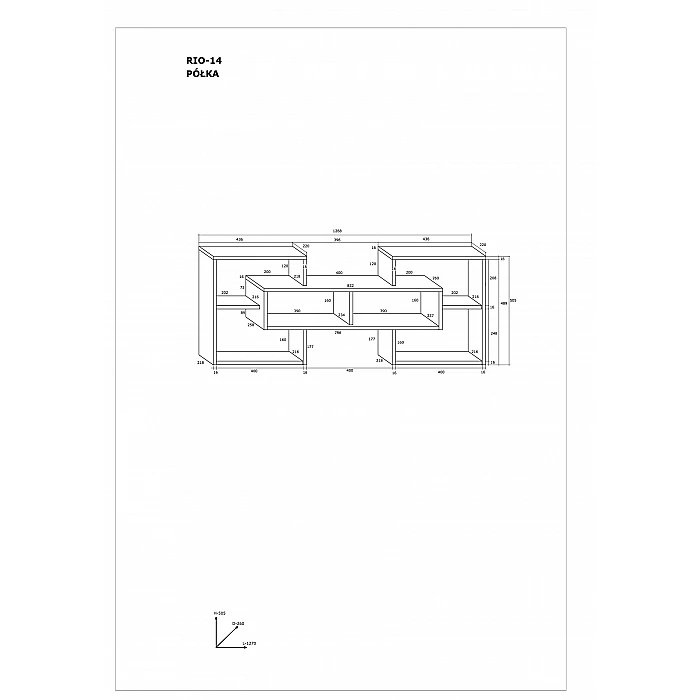 "Hanging Shelf 'RIO' 126.8x50.5x22"