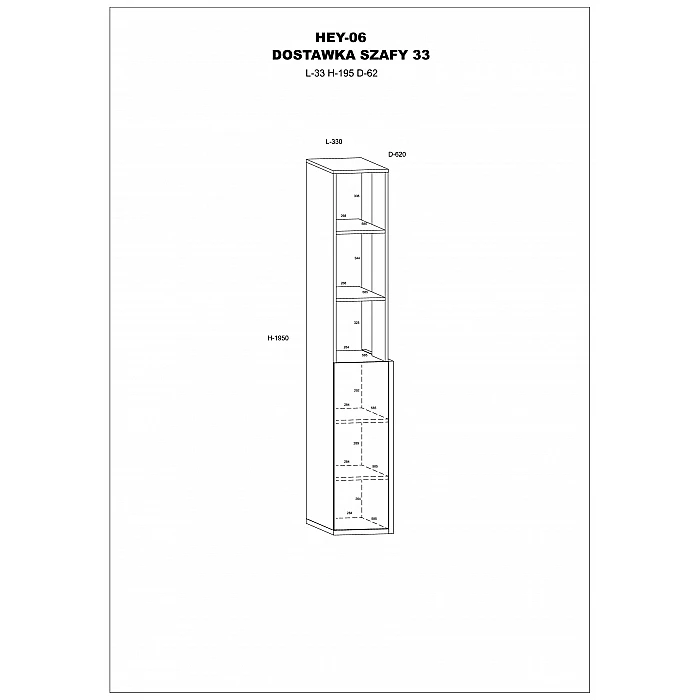 - Dimensions: 62.00cm x 33.00cm x 195.00cm