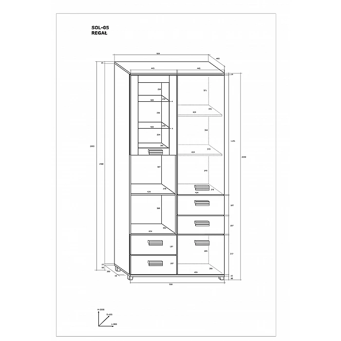 "SOLO" Shelf (gloss) 90x200x40 cm