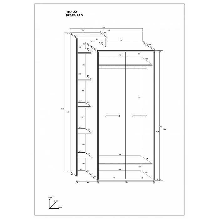 - Dimensions: 56.20cm x 105.00cm x 203.20cm