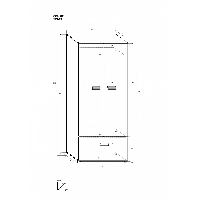 "SOLO" Gloss Wardrobe 80x200x52 cm