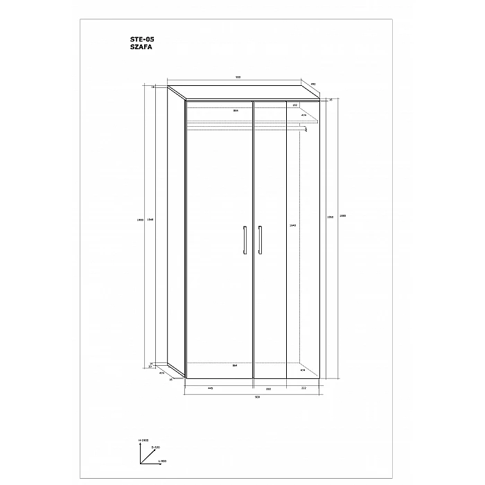 "STELLA" Wardrobe (Gloss) 90x190x49.2 cm