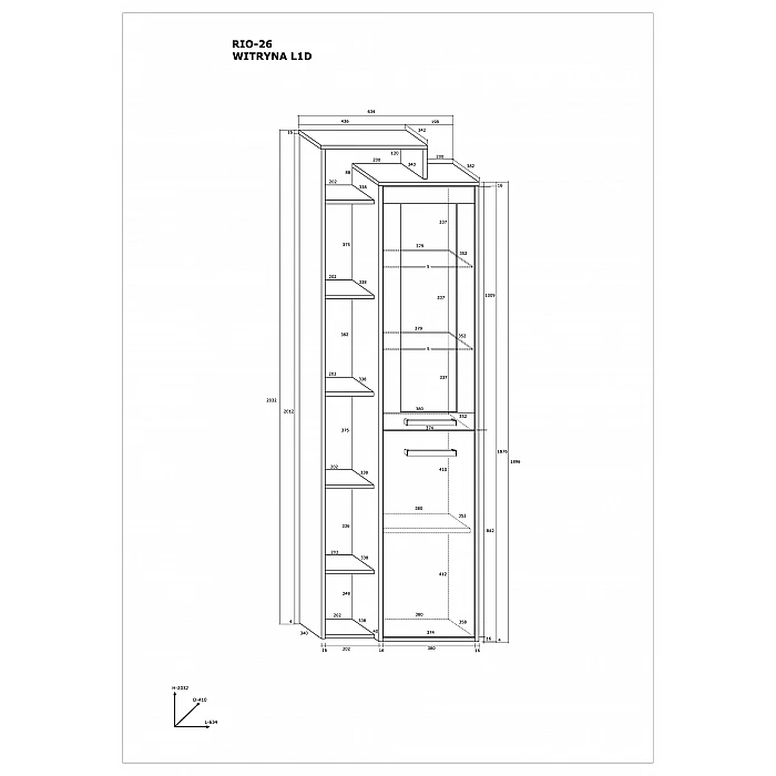 "RIO" Display Cabinet 63.4x203.2x38.2 cm