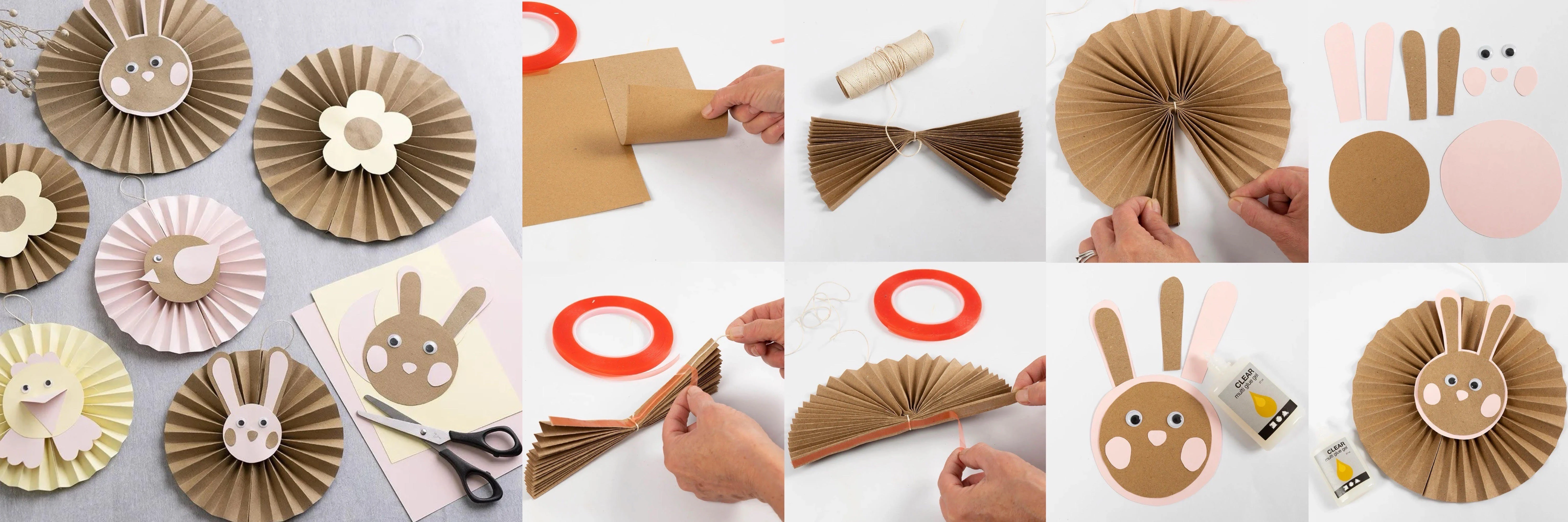 Izveido karināmas vēdekļu dekorācijas ar zaķiem, putniņiem un ziediem!