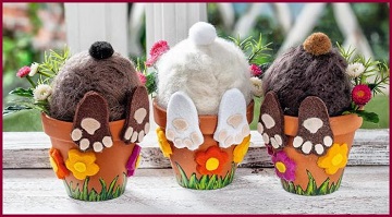 • Mēs iesakam zaķīšus "iesēdināt" māla podiņos, bet tikpat labi vari izmantot nelielus groziņus vai kartona kastītes!