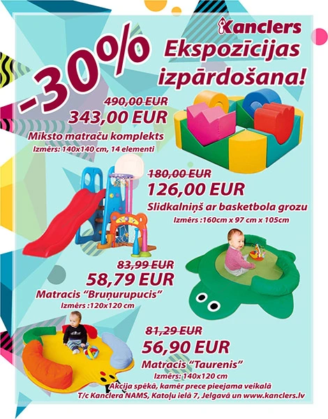 Akcija spēkā t/c Kanclera NAMS, Katoļu ielā 7, Jelgavā un www.kanclers.lv interneta veikalā. Preču daudzums ierobežots!